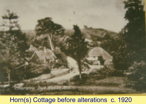 Horn Cottage 1950 shows its back garden when Charles and Betty Weeden lived there. In times gone by, it was a pub called 'The Horns'.