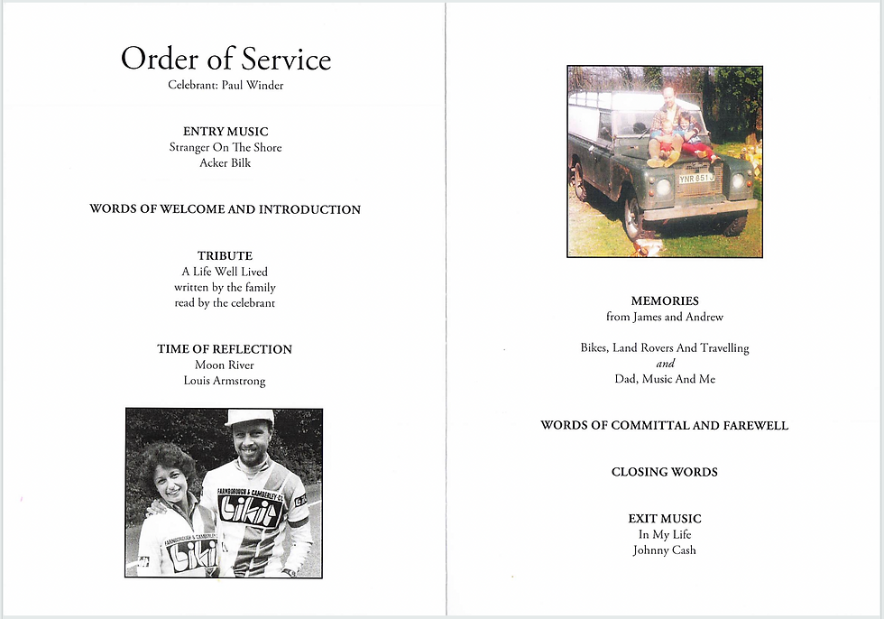 This tribute was written by the family and read by the Celebrant, Paul Winder: