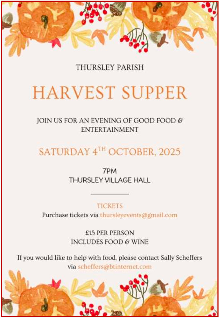 The Harvest Supper returns to Thursley: 2024 & 2025