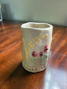 For both events, Sally Scheffers produced these lovely vases, each carrying hand-lettered text and dates