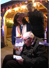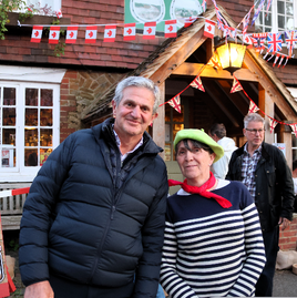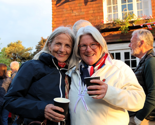 At 9pm we began the formal proceedings. We listened to a recording of Winston Churchill accepting the German surrender and we all sang I Vow to Thee My Country and God Save the King. James Mendelssohn as Chairman of the Parish Council thanked everyone involved, eighty years ago it was William Featherby as Chairman of the Parish Council who spoke to the village, no doubt thanking them all for their fortitude and service. The O'Brien family were then handed the reins: Michael and Marion read the official VE Day 80 proclamation and then Marion and Sarah lit the beacon which looked amazing standing in front of the pub. It was a perfect end to all the activities. Thank you to everyone in setting it all up, doing it and then taking it all down. It may all be cleared away now but the memories of a unique evening will stay.