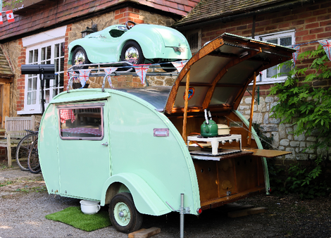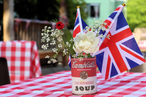 Michelle de Vries and Claire Dailly had organised the Parish Council's celebration at the pub. The copious lengths of bunting fluttered all around thanks to Peter and Teresa Goble and Peter's platform cage on his telehandler. Michelle had created wonderful tins with old wartime labels and the pub was full of props and even a UXB cordoned off area complete with replica bomb! Sally and Dave Catchpole brought their beautifully restored tear drop caravan and 1940's caravan which were much admired and brought a vintage feel to the evening.