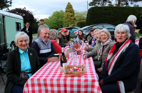 Later, the official celebration began with the early evening bell ringing. All three of the Church's bells rang for half an hour with Tim Wakeley, Steve Cruickshank, Anne Treadwell, Peter Hunter, Simon Treadwell taking it in turns. Outside in the Churchyard, in the evening sunshine, listening to the bells was very poignant. Thank you.