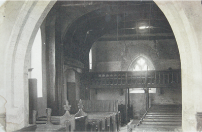 The interior of the Church before the installation of the organ and still with oil lamps