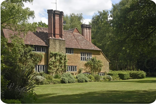Apart from the buildings in Thursley village already described, on the outskirts of the parish Lutyens designed two lakeside boathouses for Whitaker Wright in Witley Park. This was probably in 1890 when he was still studying under Earnest George. In 1901 he built the cottages at Warren Lodge and in 1909 he planned alterations to the main house there. Many of his more famous houses are in the neighbourhood, for example Munstead Wood (1896) and Tighbourne Court, Witley (1899).